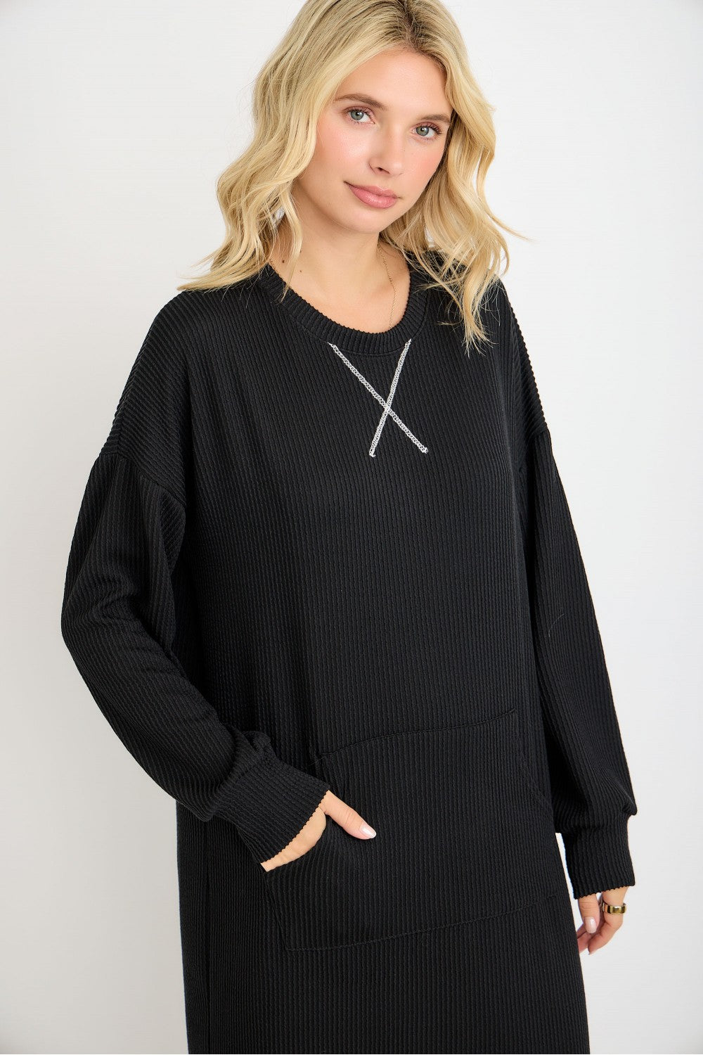 Effortlessly chic and ultra-comfortable, this women's URBAN RIB sweatshirt dress is a must-have for laid-back style. Featuring a relaxed fit with soft, cozy fabric, this dress combines the casual appeal of a sweatshirt with the trendy silhouette of a dress. Perfect for lounging at home or pairing with sneakers for a casual day out, it’s a versatile piece that fits any occasion.