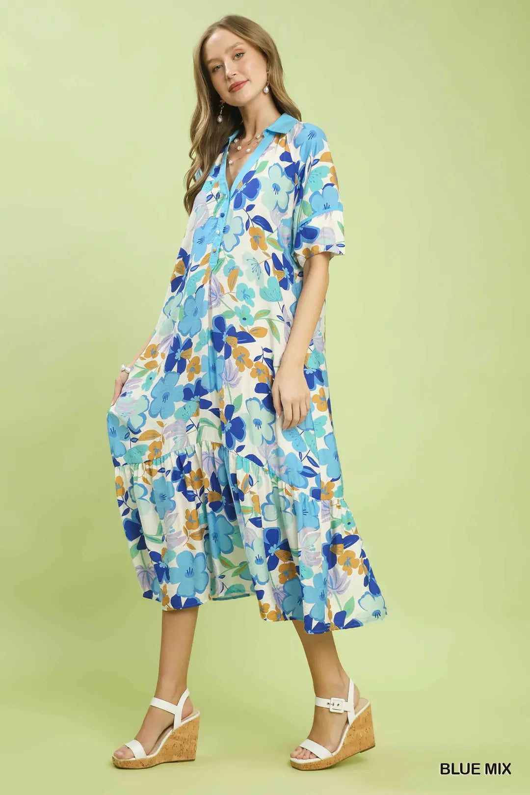 The Ciara Dress brings effortless elegance with its charming floral print and relaxed silhouette. This tiered midi dress features a flattering V-neckline, short sleeves, and practical side pockets for everyday convenience. Contrast details add visual interest, while the unlined construction keeps it light and breathable. Perfect for casual outings or dressed-up occasions, this piece transitions seamlessly from season to season.