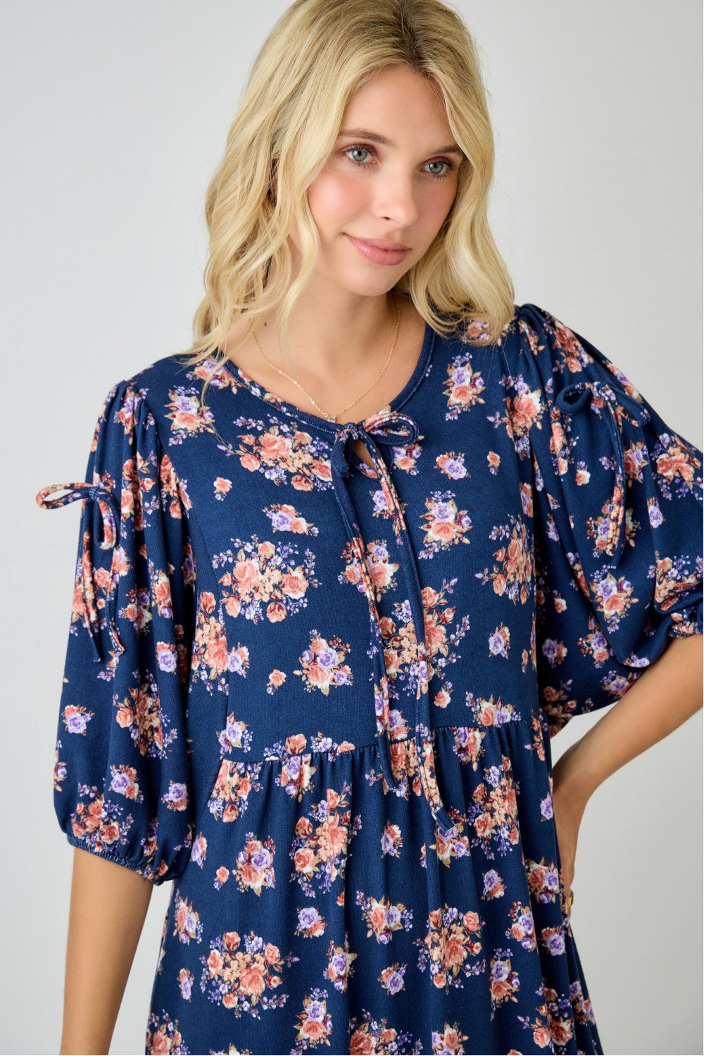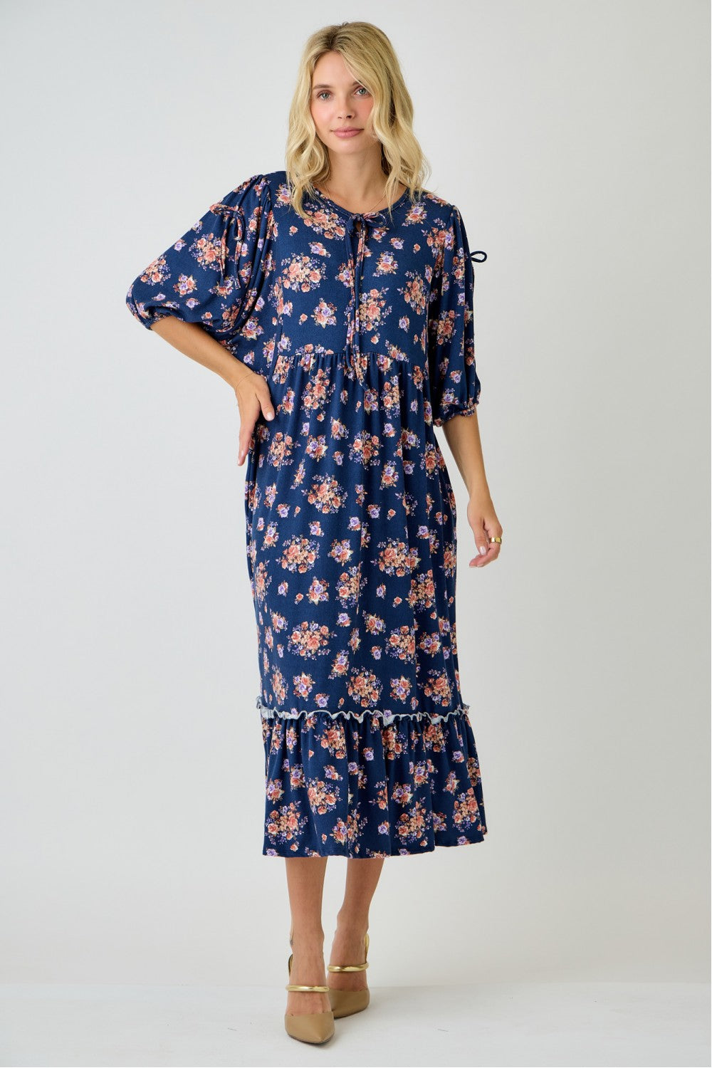 Elevate your wardrobe with the Opal Dress, a navy floral midi featuring elegant bow details that add a refined touch. Crafted for a flattering fit, this dress combines classic floral patterns with sophisticated design elements, making it ideal for both daytime events and evening occasions. Its midi length offers versatile styling options, while the bows enhance femininity and charm. Perfect for those seeking a polished yet effortless look.